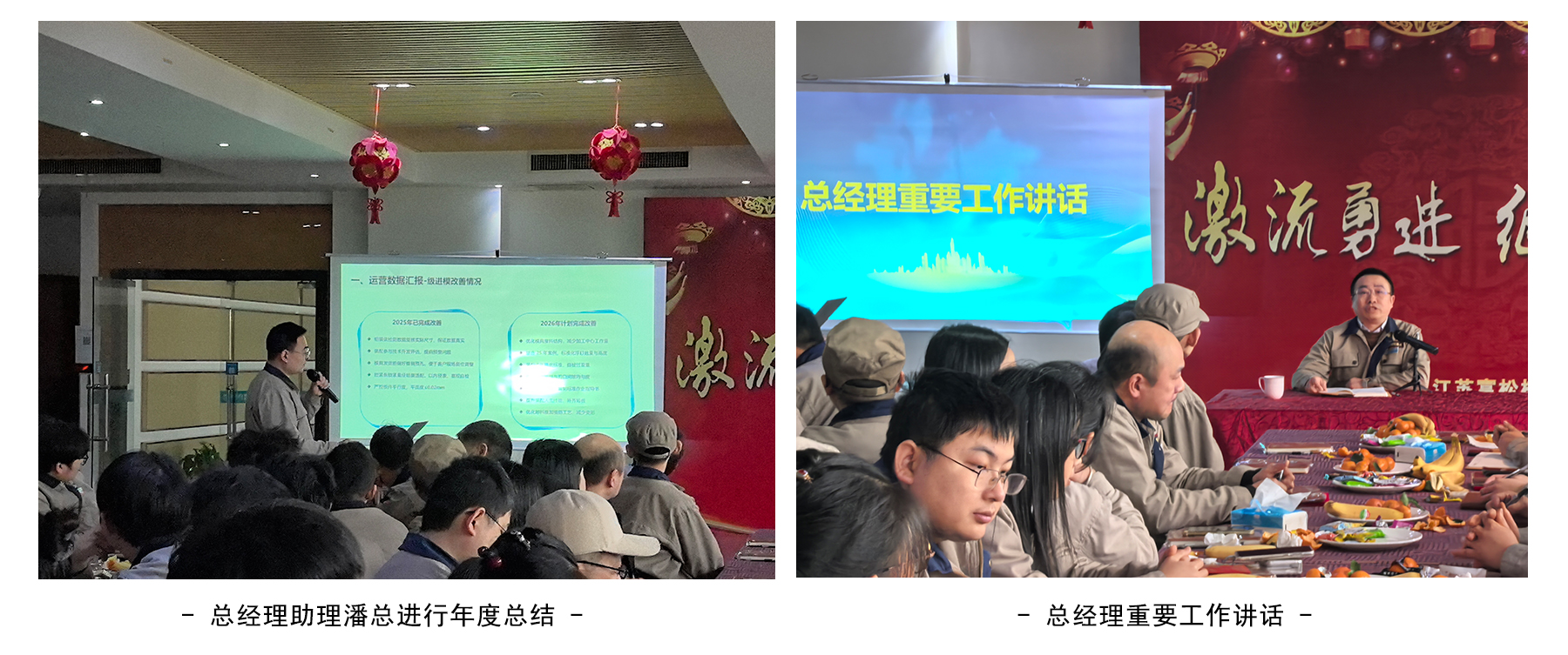 大會伊始,總經(jīng)理助理潘總對2025年公司工作成績與發(fā)展亮點(diǎn)進(jìn)行了總結(jié);對2025年度優(yōu)秀員工進(jìn)行了表彰;總經(jīng)理也就過去一年的總結(jié)發(fā)表了講話,肯定了2025年度全體員工的付出,也對2026年的工作進(jìn)行了部署、提出新期望。
