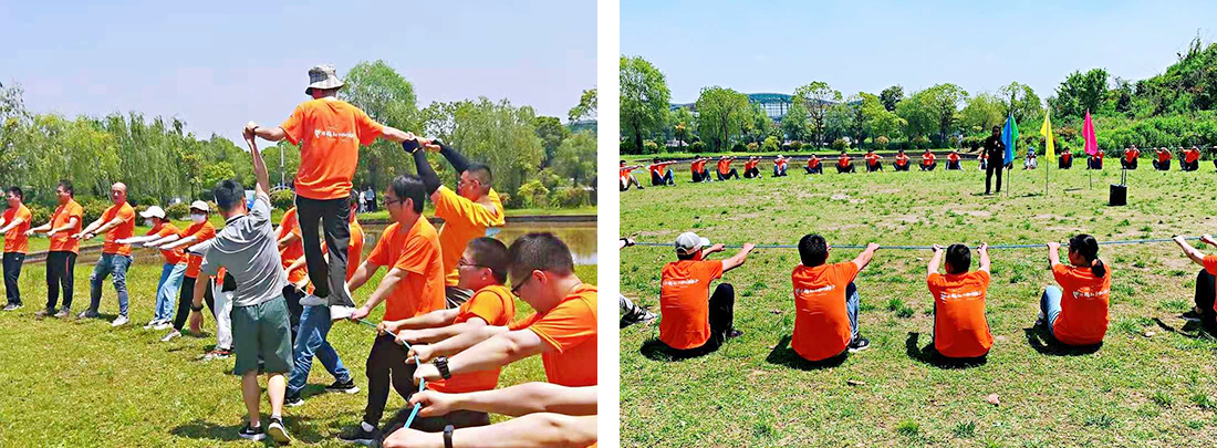 熱身完成之后,團(tuán)體游戲動(dòng)力轉(zhuǎn)圈也隨后而來(lái),我們手拉手圍成一個(gè)富有張力的圓環(huán),像極了我們?cè)诠ぷ髦袌F(tuán)隊(duì)中的共同平臺(tái),一個(gè)人的力量是渺小的,共同的力量是巨大的,六百個(gè)轉(zhuǎn)圈在大家高昂激情的口號(hào)中也輕松的完成了。之后教練加大了游戲的難度,由四隊(duì)各出一名成員站在麻繩上繞著走一圈,這極大的考驗(yàn)了團(tuán)隊(duì)協(xié)作的能力及互相之間的信任。選出的成員在上面走的同時(shí),下方的同事會(huì)鉚足了勁努力往后傾著身子,為了讓繩子緊實(shí)的同時(shí)更加穩(wěn)固,通過(guò)這個(gè)活動(dòng)讓我們明白了我們是一個(gè)團(tuán)隊(duì),是一個(gè)值得彼此信賴(lài)的團(tuán)體。