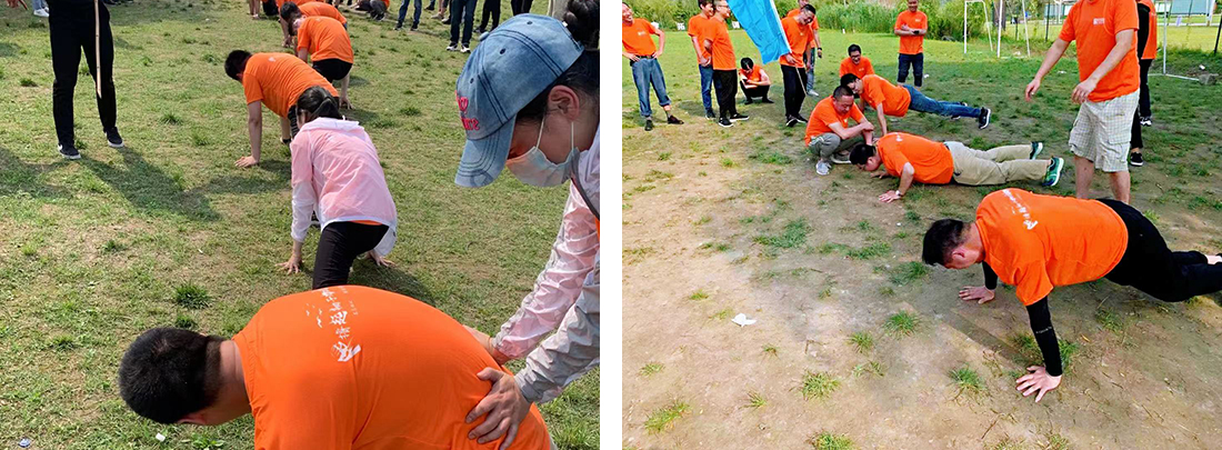 燒烤結(jié)束之后,就要開(kāi)始下午的團(tuán)隊(duì)PK賽,四個(gè)隊(duì)伍摩拳擦掌,氣氛被哄托到最高點(diǎn)。最后的勝負(fù)是通過(guò)接下來(lái)的三個(gè)比賽所積累的積分來(lái)獲得,分別是十人九足、挑戰(zhàn)極限和鼓動(dòng)人心三項(xiàng)。為了自己團(tuán)隊(duì)的勝利,大家鉚足干勁想要發(fā)揮自己最大的力量。在下午的比賽中有人摔倒了,但是沒(méi)有關(guān)系,爬起來(lái),繼續(xù)挑戰(zhàn),關(guān)鍵時(shí)刻不能給自己的隊(duì)伍拖后腿,經(jīng)過(guò)幾輪積分賽,最終只有一支隊(duì)伍獲得了最后勝利,獲得了獎(jiǎng)品。但是其他三隊(duì)的隊(duì)長(zhǎng)就要接受懲罰--俯臥撐,隊(duì)長(zhǎng)完成不了的,會(huì)有隊(duì)友主動(dòng)站出來(lái)替隊(duì)長(zhǎng)繼續(xù)完成。在下午團(tuán)建的最后,公司的所有員工在草坪上都排好拍下了合照,記錄下了這一美好的時(shí)刻。